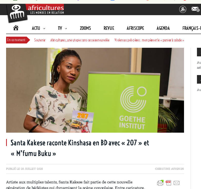 L’interview est consacrée à Santa Kakese, bédéiste congolaise engagée, autrice des albums 207 et M’Fumu Buku, l’intello.